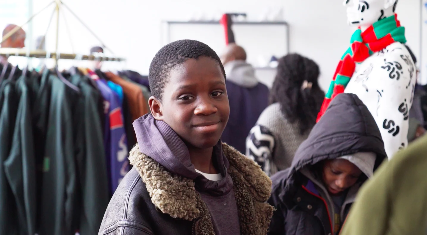 An empty storefront (donated by Hines) was transformed into For The Greater Hood, a “true store experience” where shelter residents could come to shop for free for the holidays. The space was designed and decorated to look like any other pop-up store in Tribeca, the difference was the merchandise had no price tags. The store was stocked with donated hoodies, sneakers, gloves, backpacks, toiletry bags, water, and more, and featured live art by Jamel Robinson and buzzcuts by Mark Bustos. Invitations were extended to individuals and families currently living in NYC shelters, in coordination with CitiLeaf Housing, the Urban Resource Institute, and the Coalition for the Homeless.
